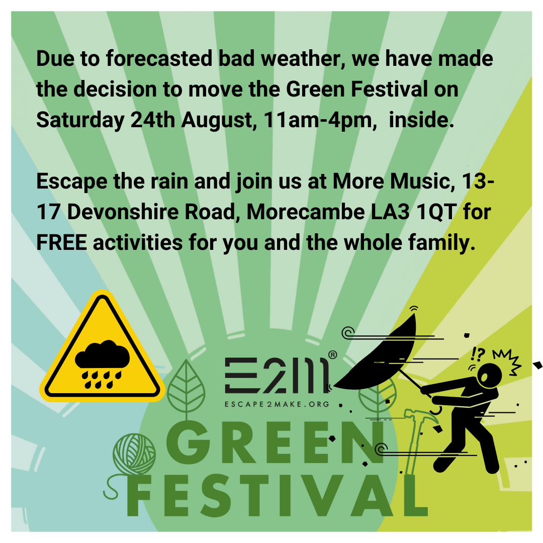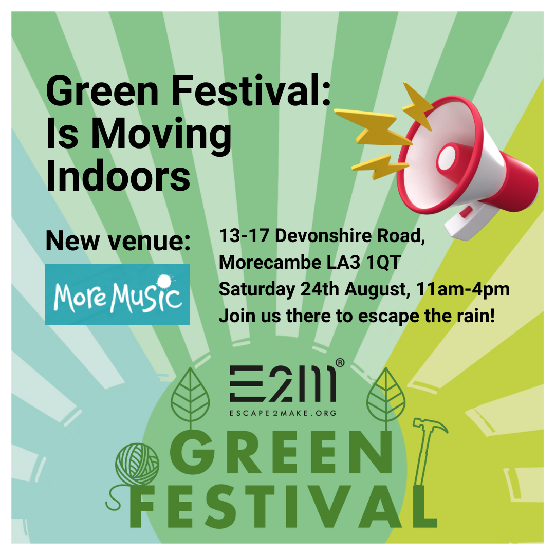 Escape2Make Green Festival is moving to More Music this Saturday (24th August)